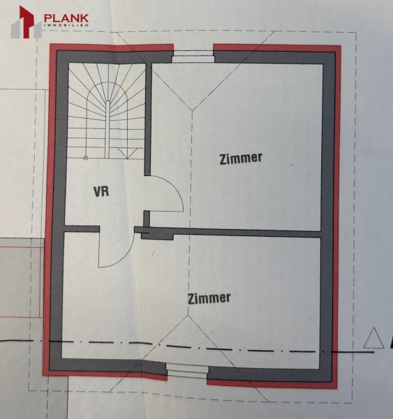 Obergeschoss: Vorraum, 2 Zimmer, Dachboden.