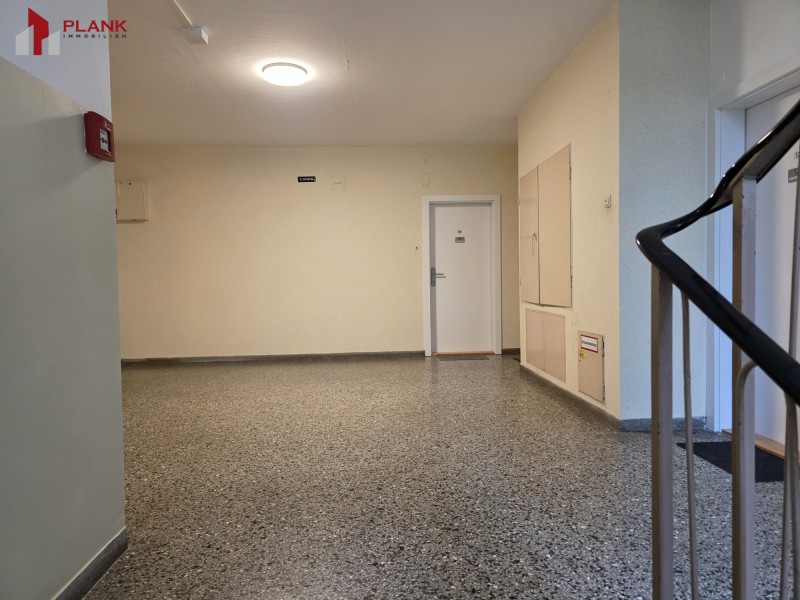 Die Wohnung liegt zurückversetzt von der Straße, wodurch Sie vom Balkon aus einen schönen Blick ins Grüne auf die Allgemeinfläche genießen. Ein Parkplatz auf der beschrankten Allgemeinfläche steht ebenfalls zur Verfügung.