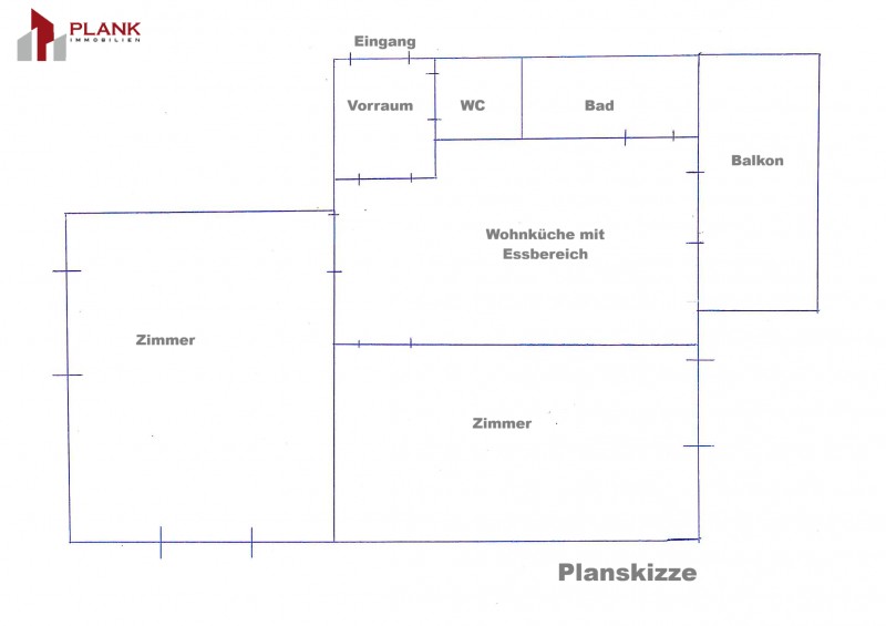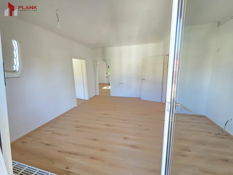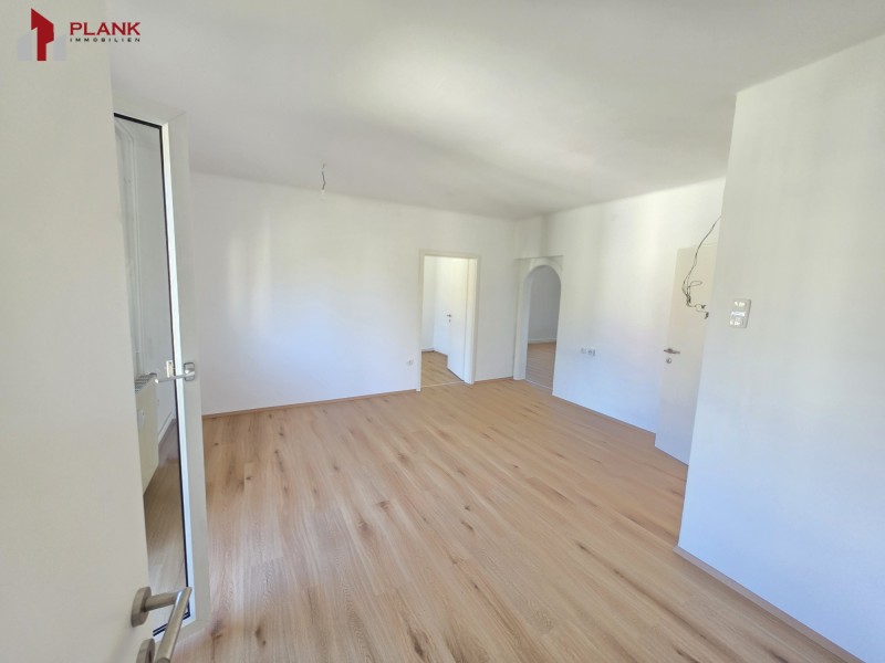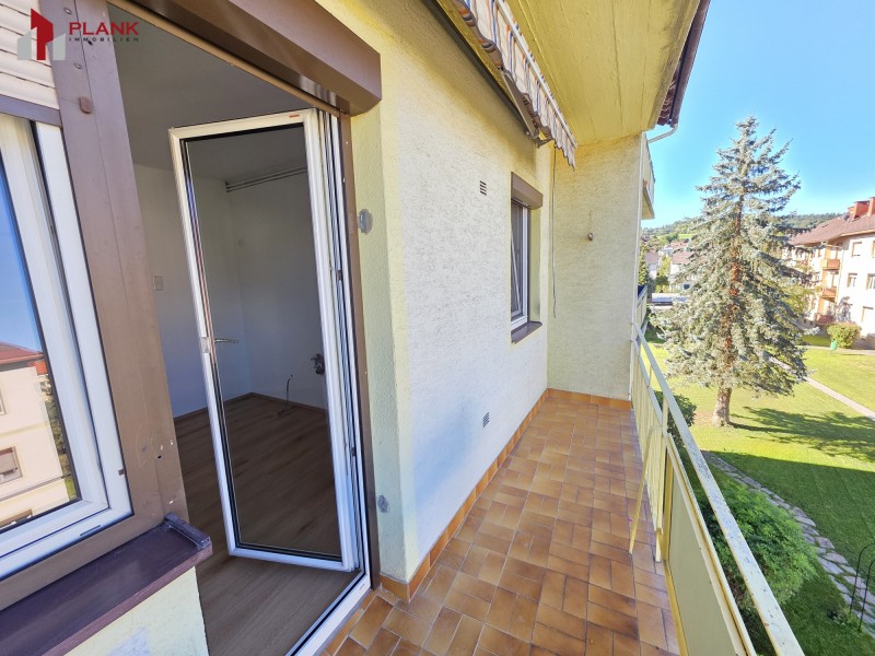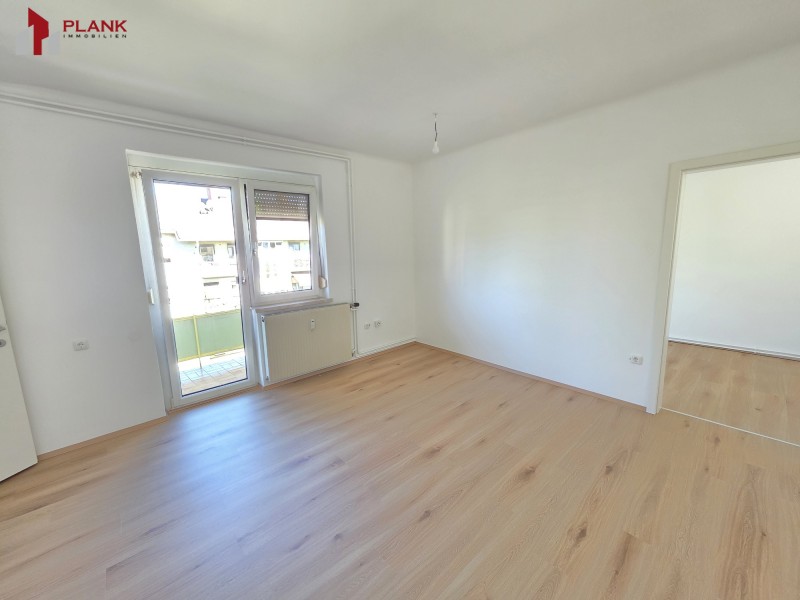 Raumaufteilung: Vorraum, WC, Offene Küche mit Essbereich und Balkonzugang (bei Bedarf als Wohnküche nutzbar – somit wären zwei Schlafzimmer möglich), Badezimmer mit Wanne und Fenster, Zimmer, Schlafzimmer, Kellerabteil.